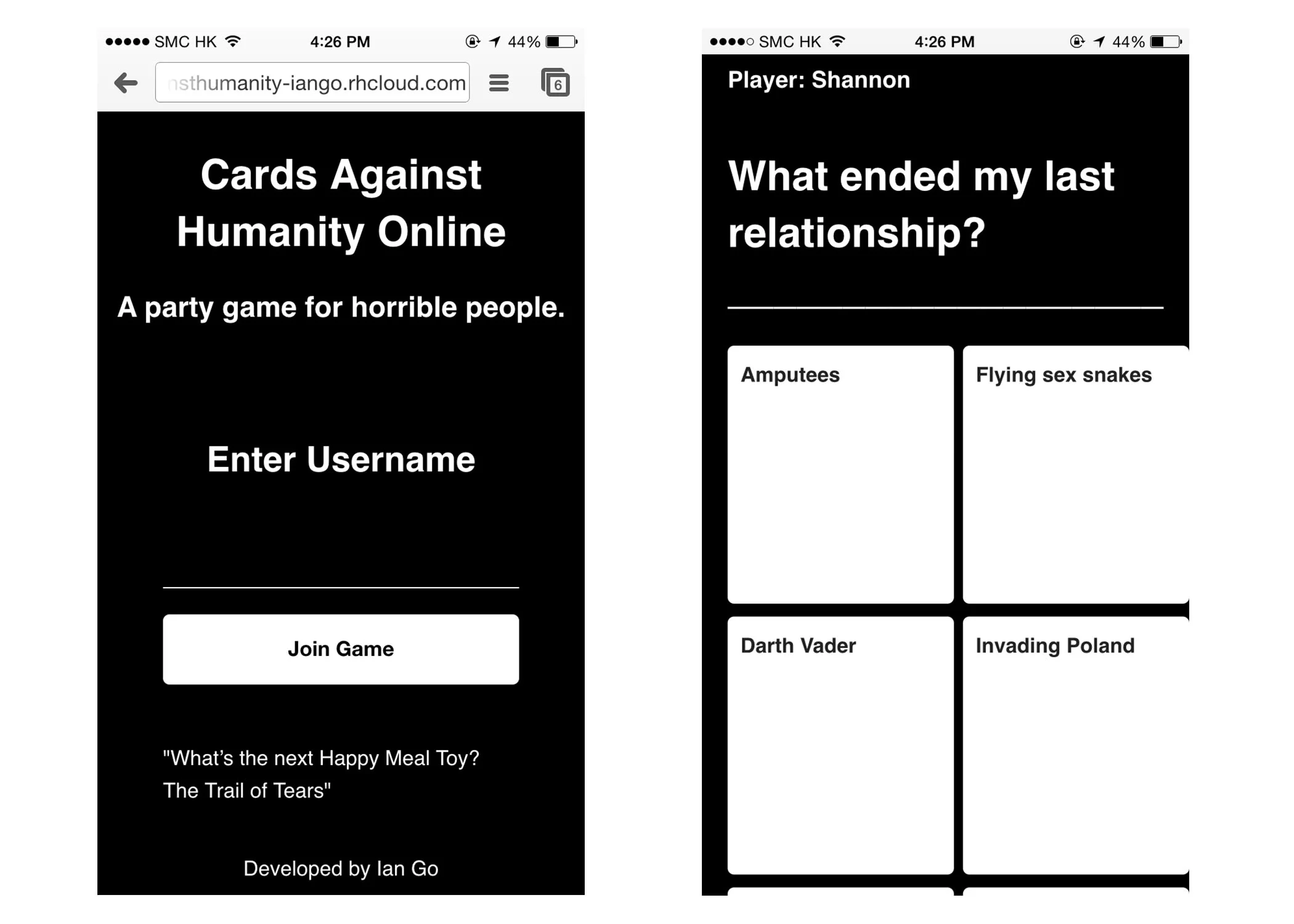 See my code at https://github.com/ianpgo/cardsagainsthumanity .